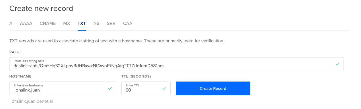 --value="dnslink=/ipfs/Qmc2o4ZNtbinEmRF9UGouBYTuiHbtCSShMFRbBY5ZiZDmU"